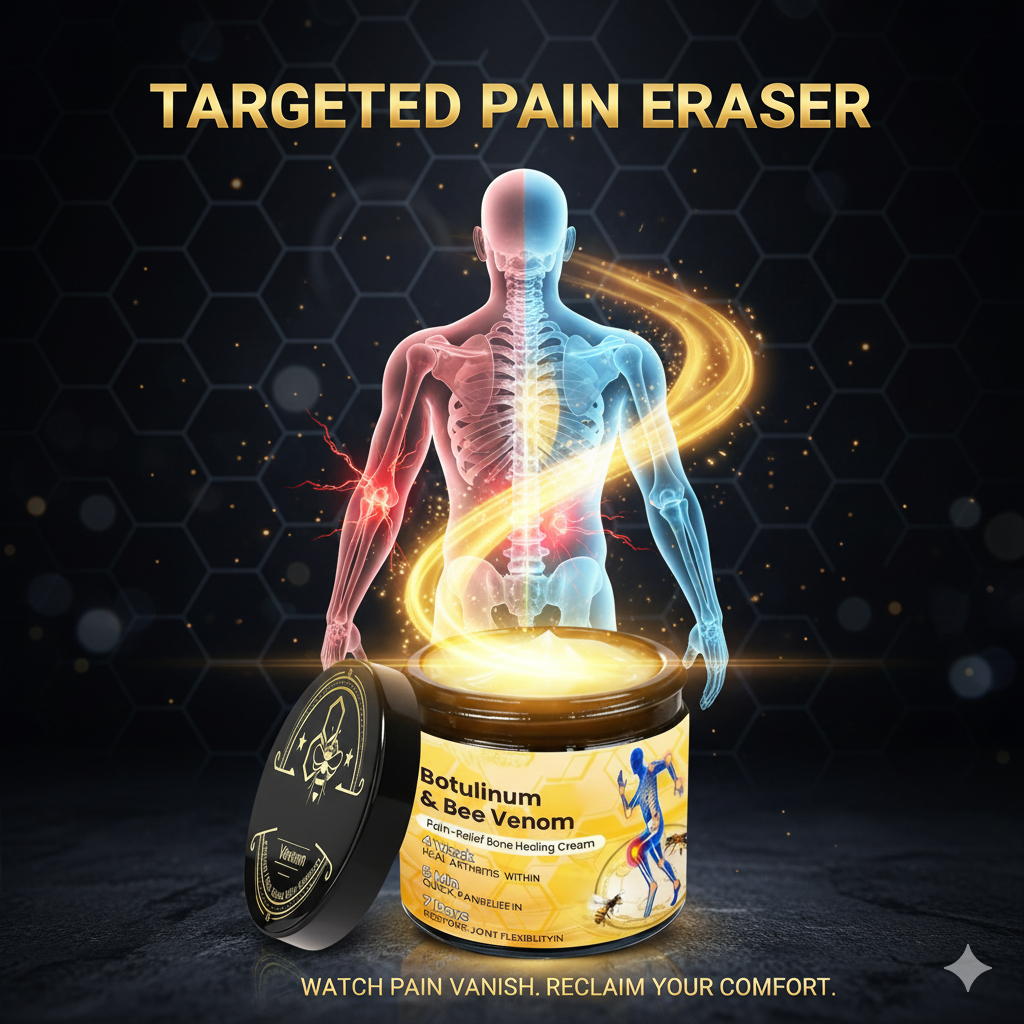 This advanced formula combines Bee Venom Therapy + Botulinum Extract + Herbal Pain Healers that work deep inside the tissues to relieve pain, repair damaged joints, and restore mobility.